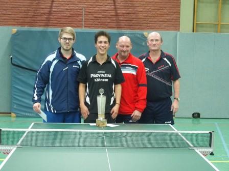 Manni Sieger 2017Manni Bals (Bild) setzte sich im letzten Jahr durch. Bereits beim geselligen Abschluss war klar, im nächsten Jahr gibt es ebenso viele Bewerber um die Nachfolge wie in jedem Jahr. Das macht seit vielen Jahrzehnten den Reiz dieser internen Auseinandersetzung um den Vereinsmeistertitel aus. Und bildet zudem einen schönen Abschluss einer jeden Tischtennissaison. Am Samstag 28. April ab 14.30 Uhr ist es in der Turnhalle der Josef-Annegarnschule wieder soweit. Dann verteidigt der Top-Akteur der ersten den begehrten Pokal und alle anderen stehen in den Startlöchern.  Aber nicht nur die Einzel zählen, auch im Doppel wird um Siegerehren gerungen. Und da entscheidet oft über Wohl und Wehe das Losglück, und ein sicheres Händchen der Akteure. Für Spaß und Spannung ist also gesorgt. Und schon jetzt ist sicher, beim anschließenden Beisammensein wird ganz sicher der ein oder andere Ball noch diskutiert werden. Und noch etwas scheint vermutlich sicher: Dies sind die letzten Vereinsmeisterschaften in Celluloid. Im Tischtennis wechselt das Material zum Plastik. Das bedeutet, dass vermutlich ab der kommenden Saison auch beim BSV das Celluloid als Rohstoff für die Bälle ausgesorgt hat und der Plastikball Einzug in die Josef-Annegarnturnhalle hält. Ein Grund mehr, in diesem Jahr diesen markanten Wechsel mit einem Titel zu krönen.