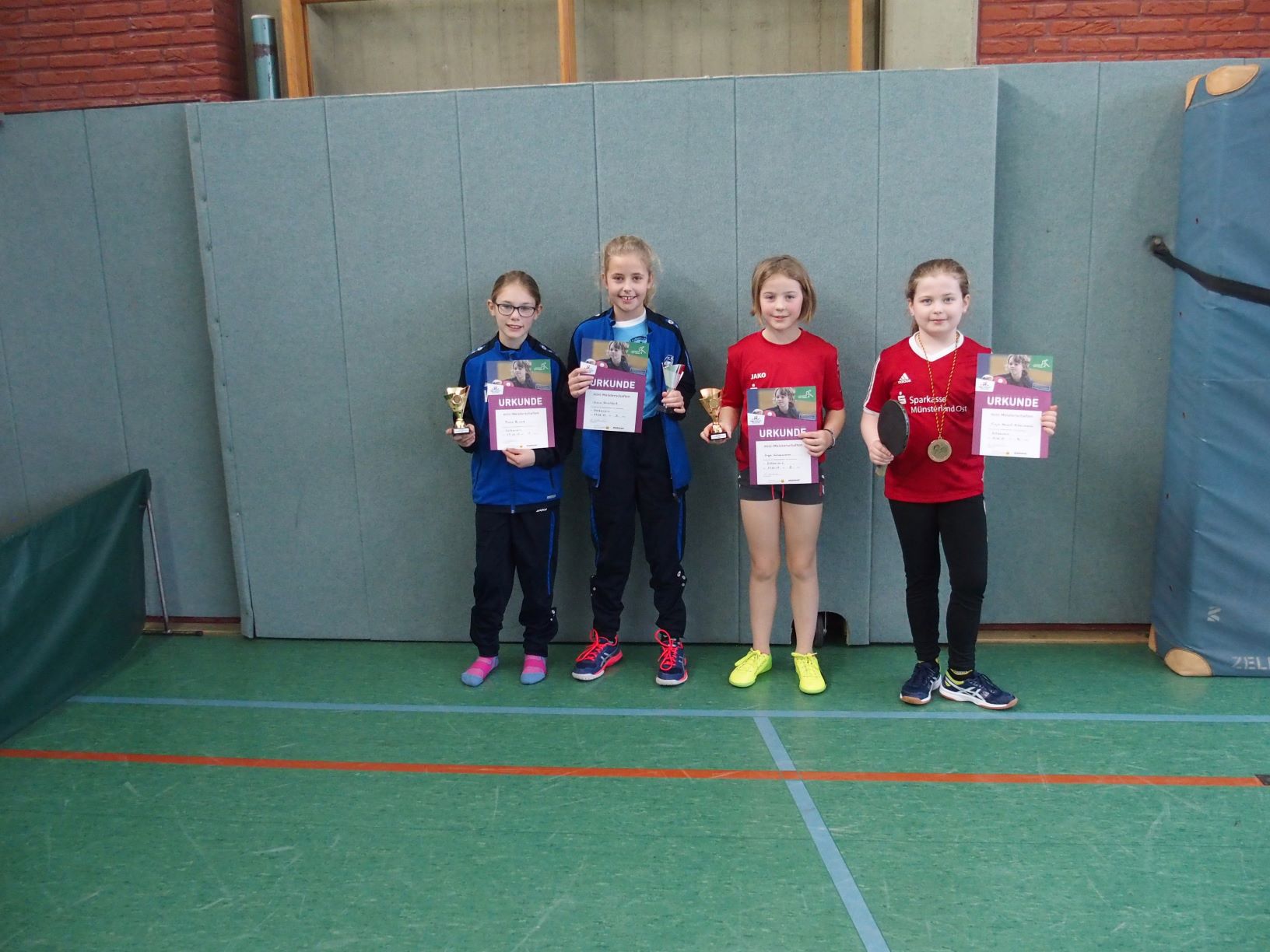Wie schon in den vergangenen Jahren, hat die Tischtennisabteilung des BSV Ostbevern am 17.02.2019 in Ostbevern einen Ortsentscheid im Rahmen der bundesweit ausgetragenen TT- Mini-Meisterschaften durchgeführt. Teilnahmeberechtigt waren alle Jungen und Mädchen, die in keiner TT-Vereinsmannschaft gemeldet sind und keinen TT-Spielerpass besitzen. Die Grundschulen in Ostbevern begrüßen die Aktion des BSV, da sie das Anliegen des schulischen Sportunterrichtes unterstützt, Kindern möglichst viel Möglichkeit zur Bewegung zu geben und Spaß am sportlichen Wettkampf zu vermitteln. Wie im vergangenen Jahr wurde auch wieder ein TT- Vergleichswettkampf zwischen Schülern der Ambrosiusschule und der Franz-von-Assisi-Schule durchgeführt. Dabei konnte sich nominell die Franz-von-Assissi-Grundschule mit 23 Punkten hauchdünn gegenüber der Ambrosius-Grundschule mit 21 erreichten Punkten durchsetzen. Den verdienten Schulpokal erhält die Schule in Kürze von Abteilungsleiter Markus Redbrake. Teilnehmerstärkste Klasse war die 4b der Ambrosiusschule mit 8 Teilnehmer(inne)n.