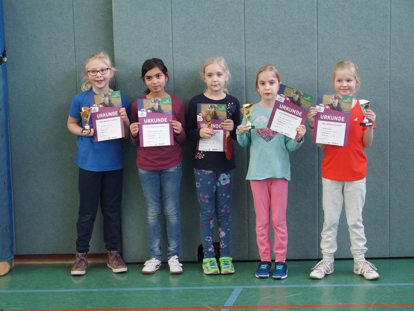 Die Platzierten der Jahrgänge 2008/2009 haben sich damit auch für den Kreisentscheid der Mini-Meisterschaften im Frühjahr 2019 qualifiziert. Wir gratulieren allen Teilnehmenden und hoffen, dass es vergnügliche Stunden in der Turnhalle waren. Vielleicht sieht man sich ja auch wieder beim TT-Training mit Trainer Benne Lauckmann montags von 16.15 Uhr bis 17.15 Uhr in der Turnhalle der Josef-Annegarnschule.